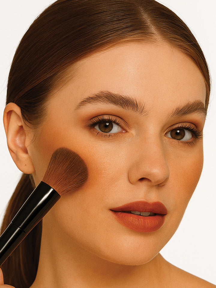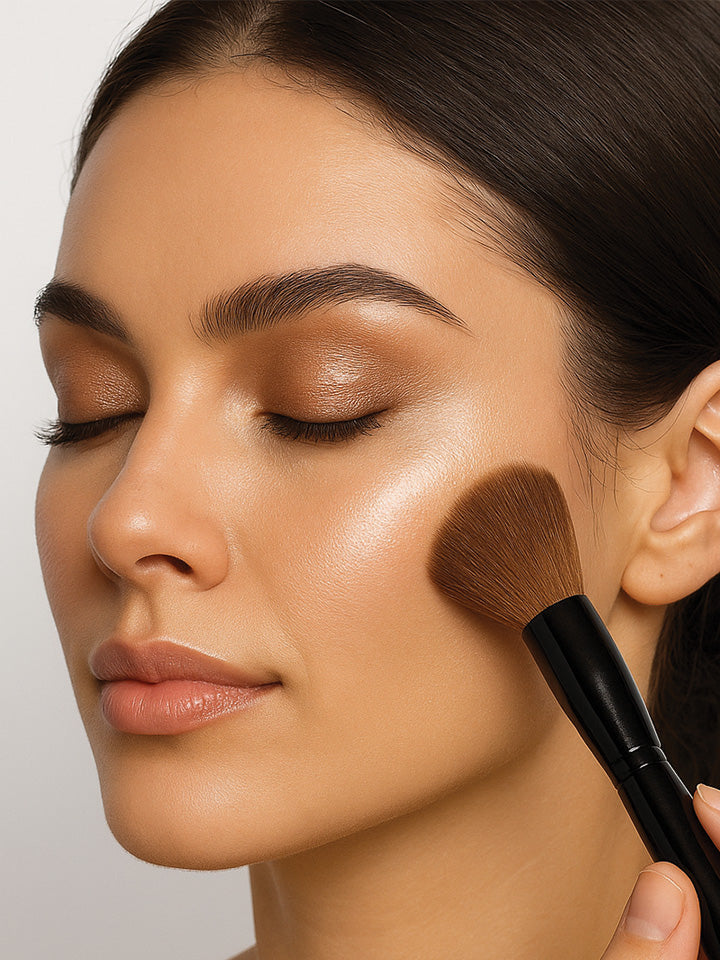 Expertly tapered for precise highlight placement on cheekbones, brow bones, and the bridge of the nose—giving you that lit-from-within glow.